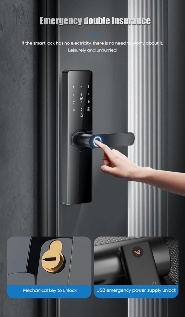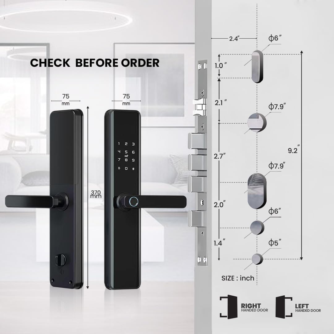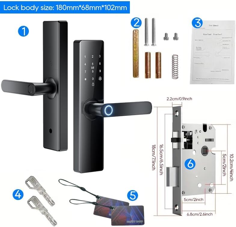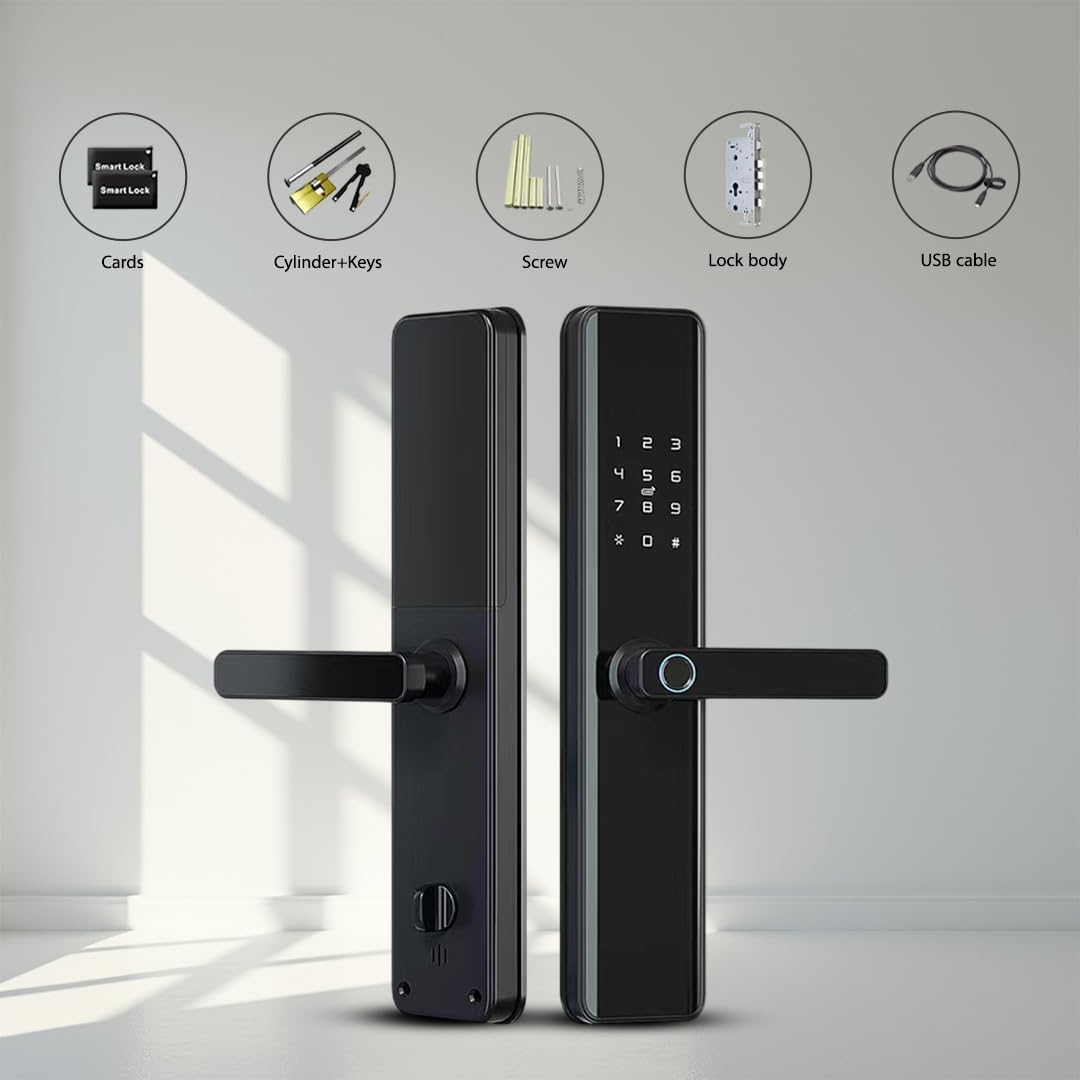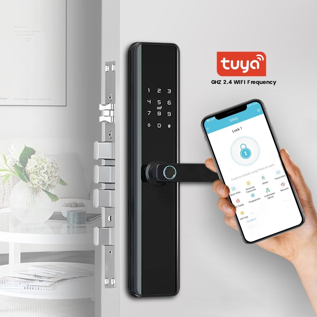 Remote Control: Manage and control your Wifi Door Lock from anywhere using the Tuya smart app, no additional bridge required. Keyless Entry: Enjoy 5-in-1 keyless entry options including fingerprints, passcode, IC Fob, and mechanical key for enhanced security and convenience. Automatic Locking: Unlock your door in under 0.3 seconds with fingerprint recognition and set the lock to automatically secure in 3-900s upon exit. Easy Installation: Simple installation with a Phillips screwdriver, suitable for both left and right-handed doors, eliminating the need for a locksmith. Satisfaction Guaranteed: Purchase with confidence thanks to our 30-day money-back guarantee, two-year product warranty, and lifetime customer support for this smart deadbolt lock.